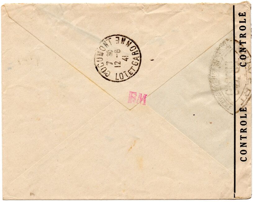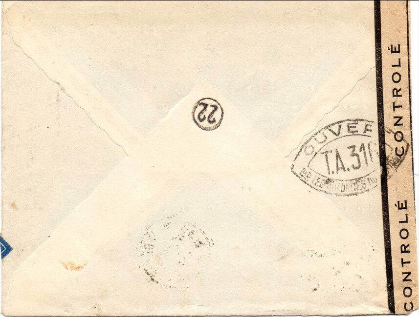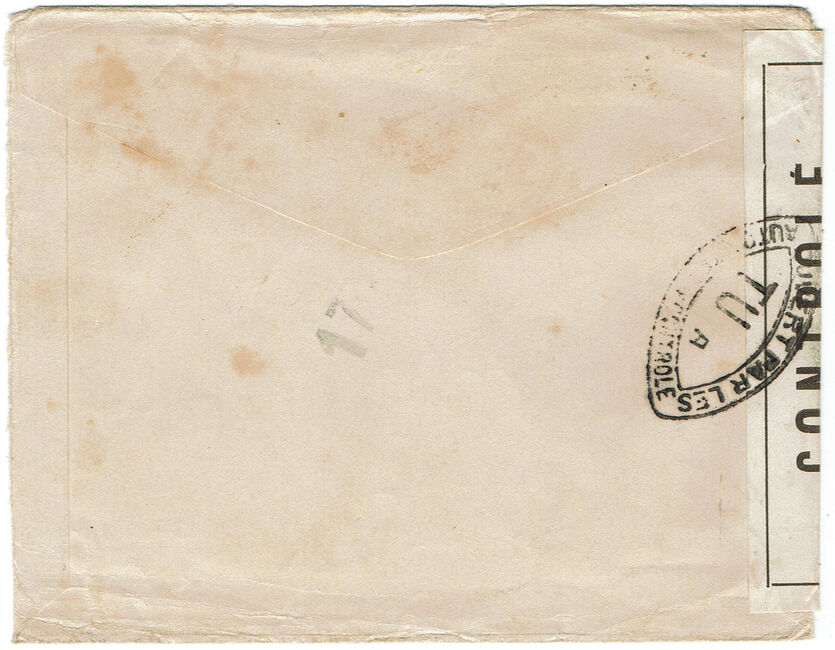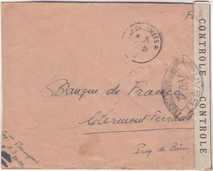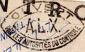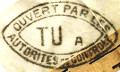 Cachets avec légende ouvert par les autorités du contrôle. Ces cachets ont été mis en place après l'armistice de 1940.