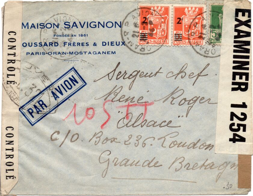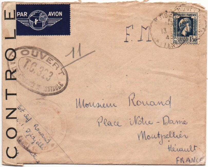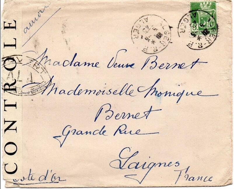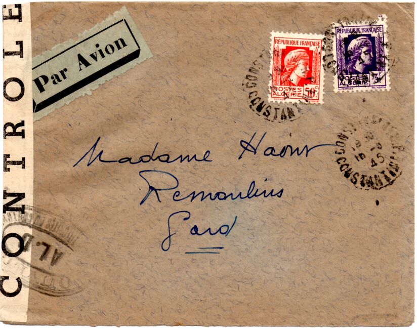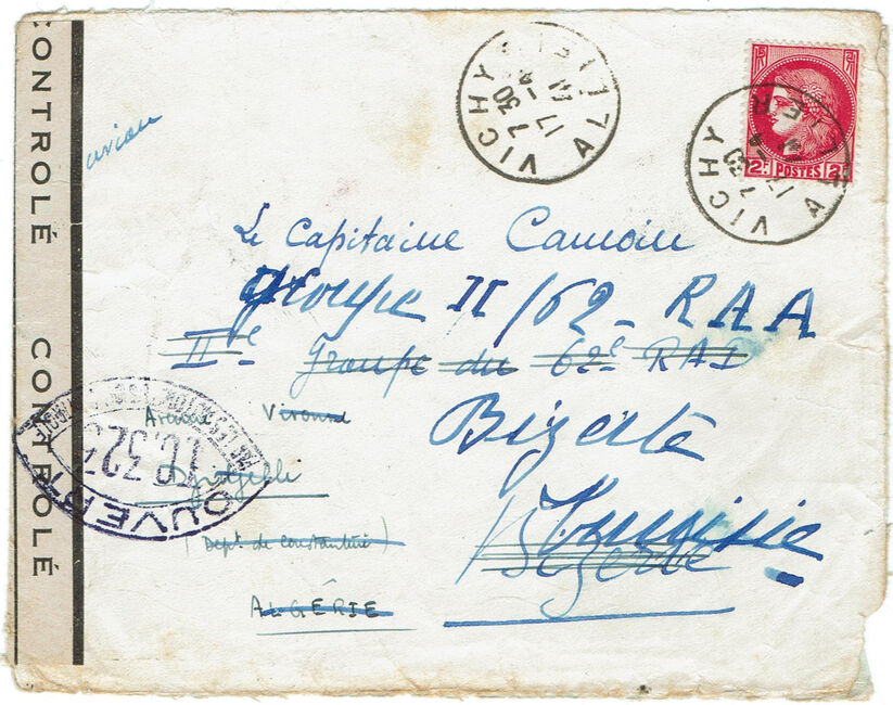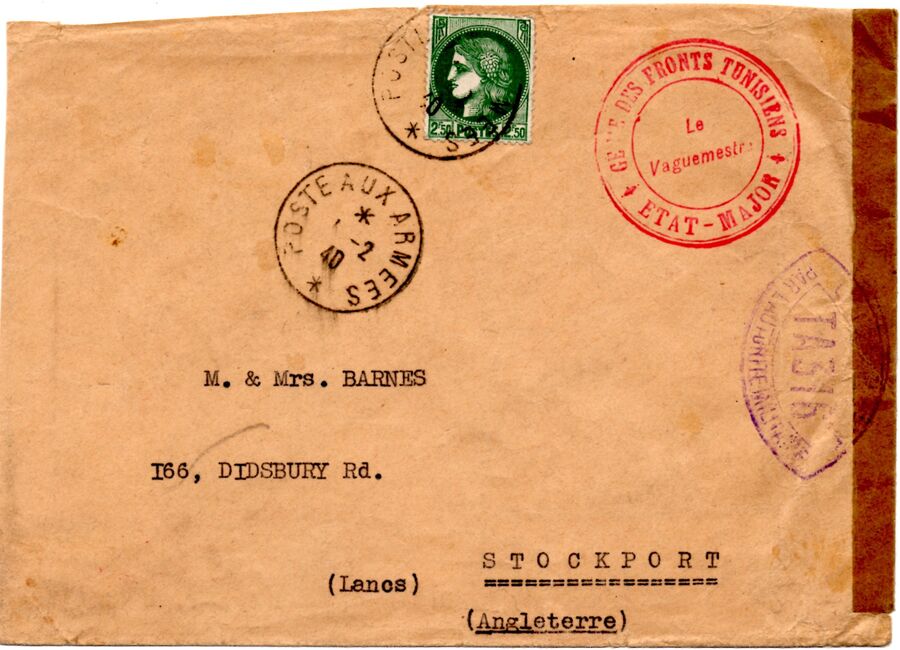 Toutefois après le débarquement allié en Afrique du Nord, quelques cachets avec légende ouvert par l'autorité militaire sont réutilisés. Ceux pour lesquels un exemple a été vu sont signalés.
