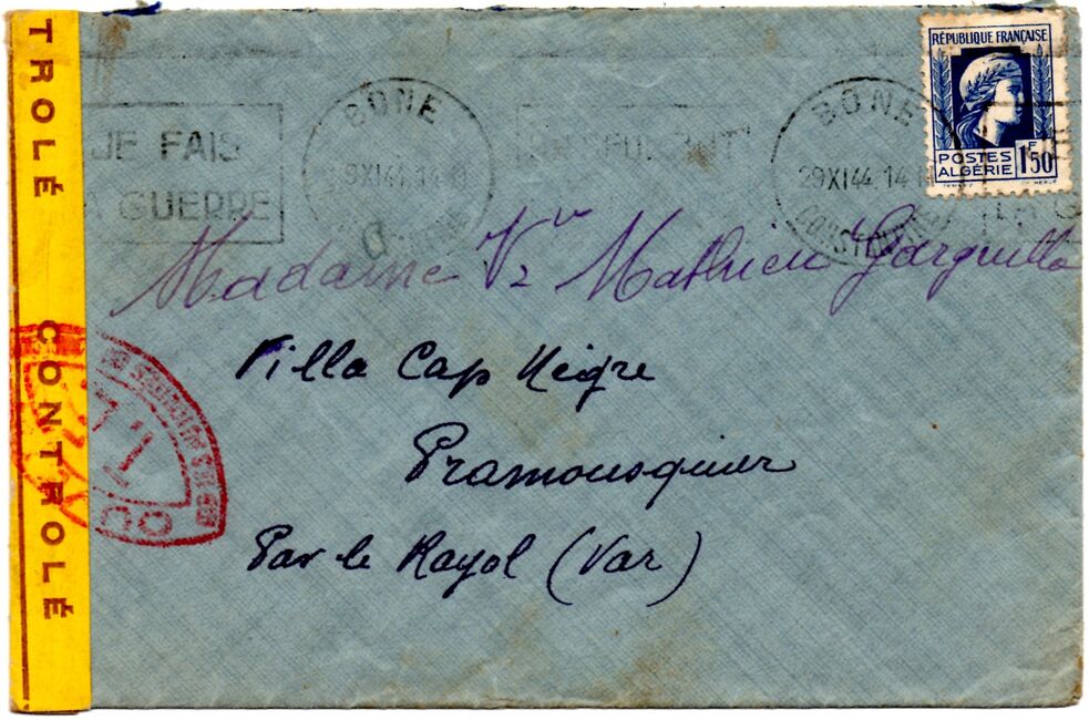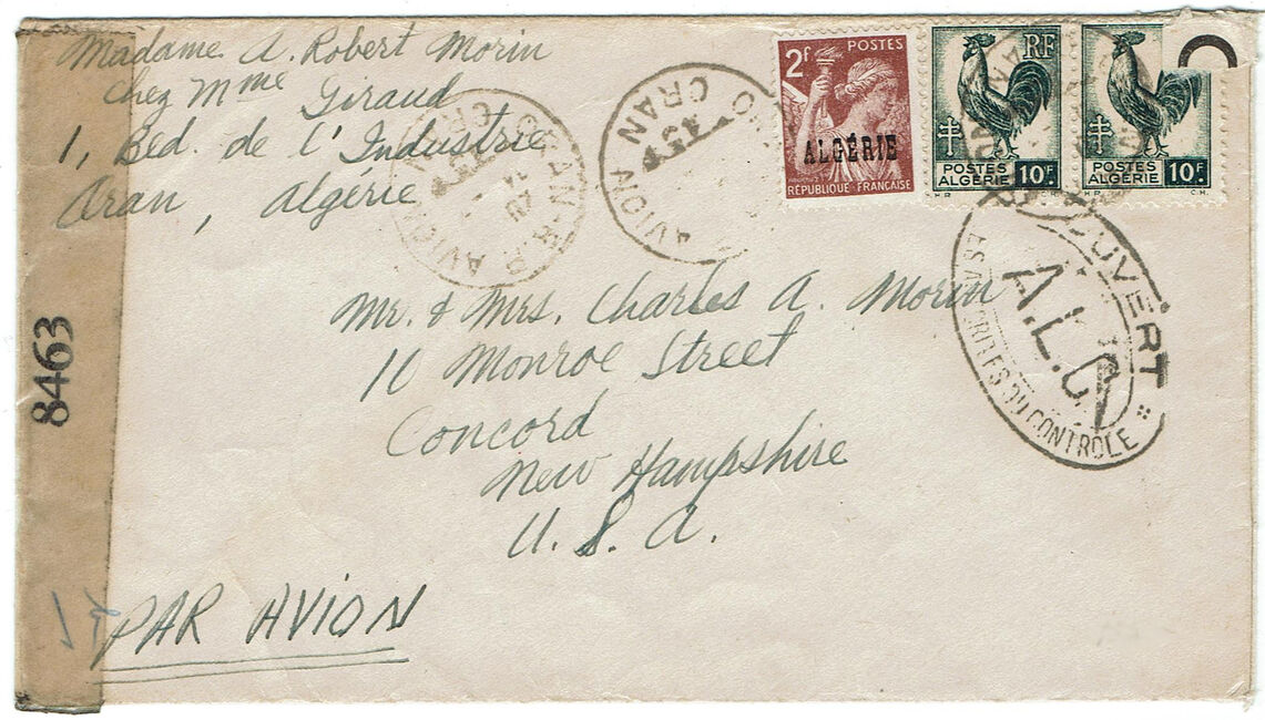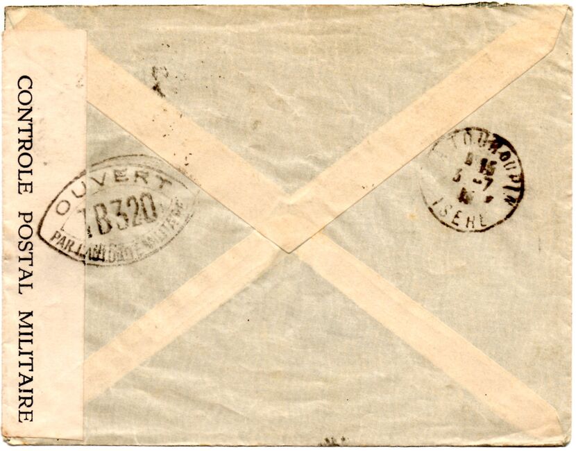Comme en métropole, les commissions d'Afrique du Nord sont équipées d'un cachet en forme de calisson avec légende ouvert par l'autorité militaire, et de cachets ronds de type déesse assise. Toutefois les cachets au type déesse assise ne semblent pas avoir été utilisés comme marque de censure, mais plutôt comme marque administrative et de franchise postale (comme ci-dessous l'exemple de lettre envoyé de la commission YA).