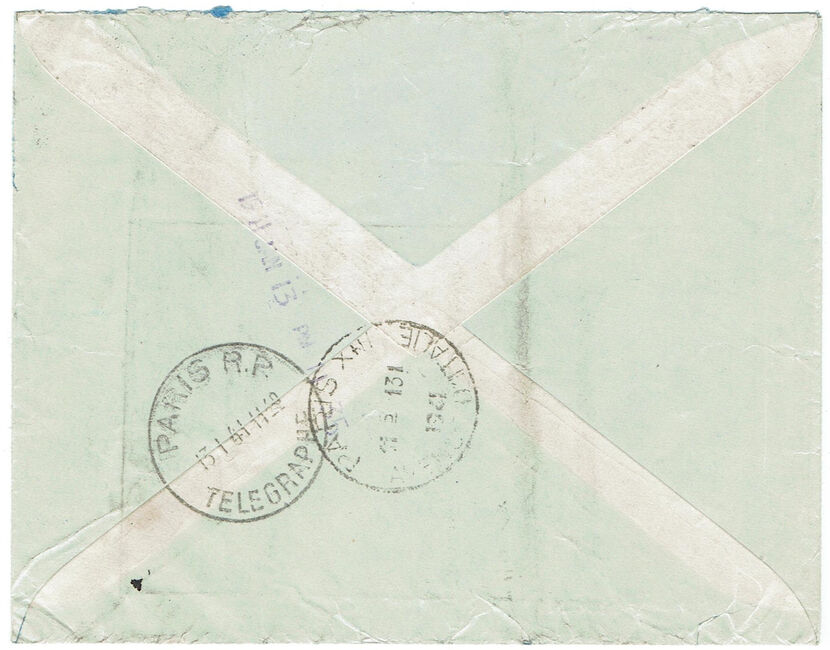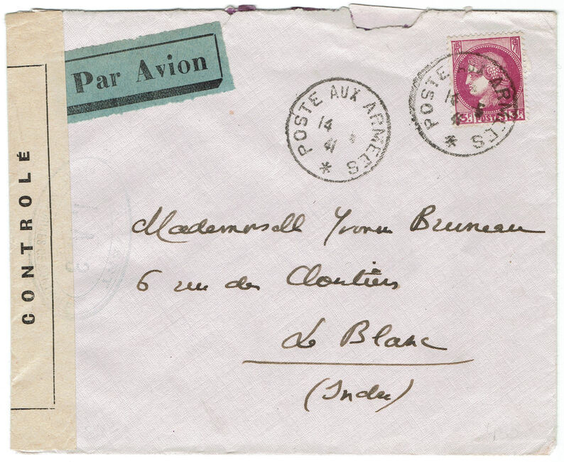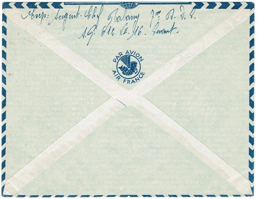 Surtaxe aérienne applicable au courrier des militaires stationnés au Levant à destination de l'Egypte du 15 décembre 1939 au 14 juillet 1941: 0,75 F. par 10 grammes.