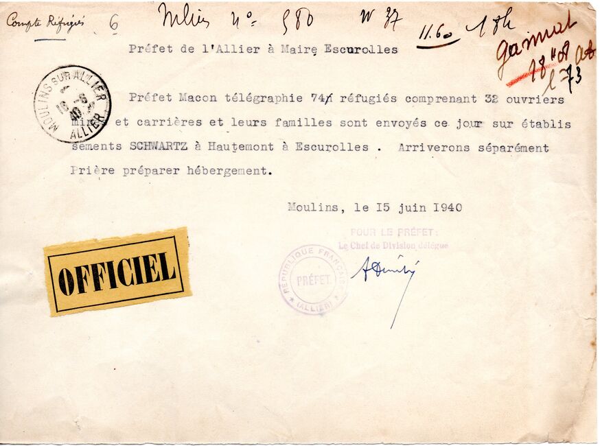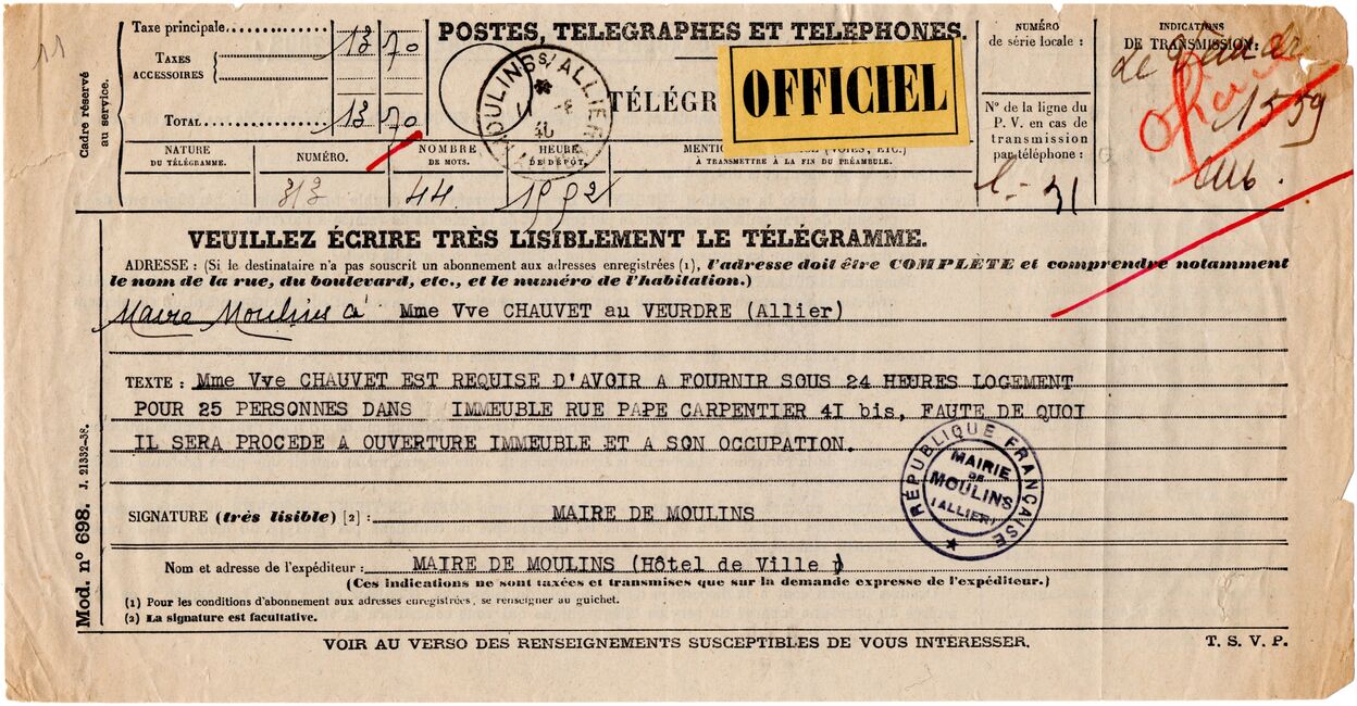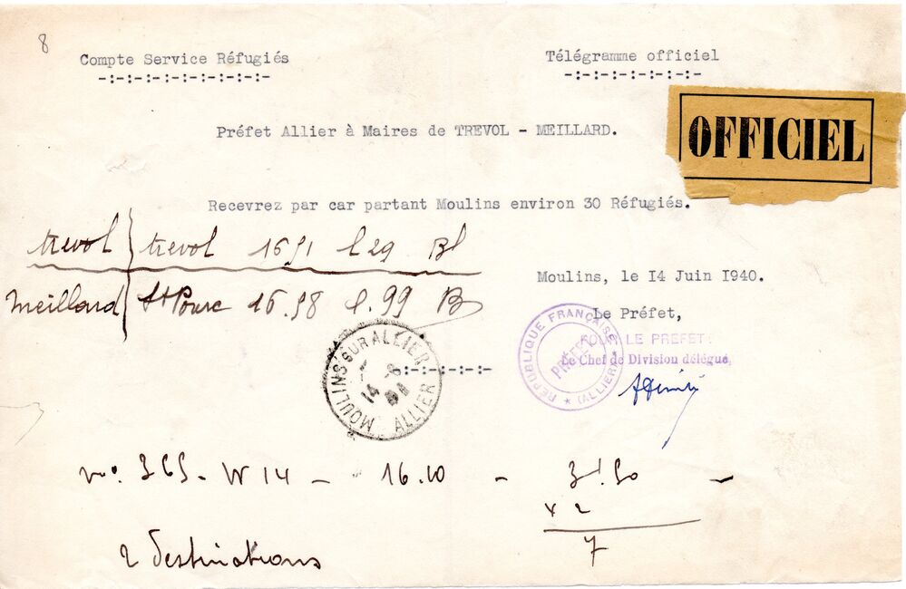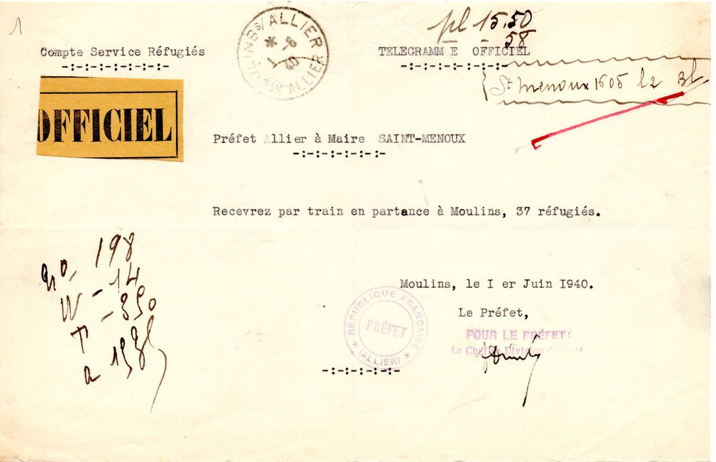 Les administrations françaises se replient devant l'avancée des troupes allemandes qui franchissent la Meuse le 13 mai 1940 et occupent Paris, déclarée ville ouverte, le 14 juin 1940. Le gouvernement a lui quitté Paris pour Tours (Indre-et-Loire) le 10 mai 1940.
