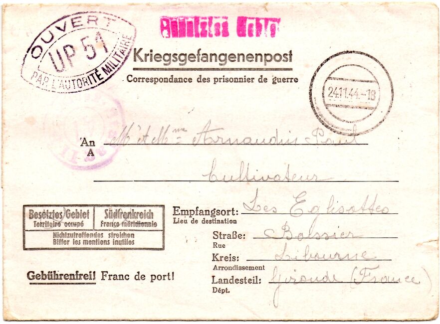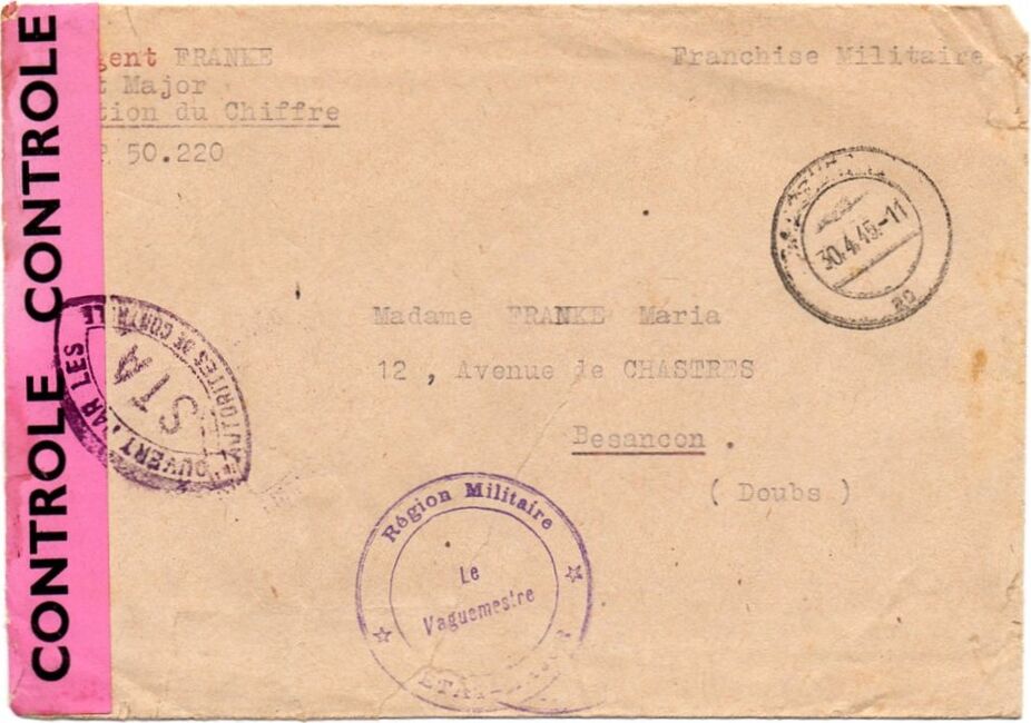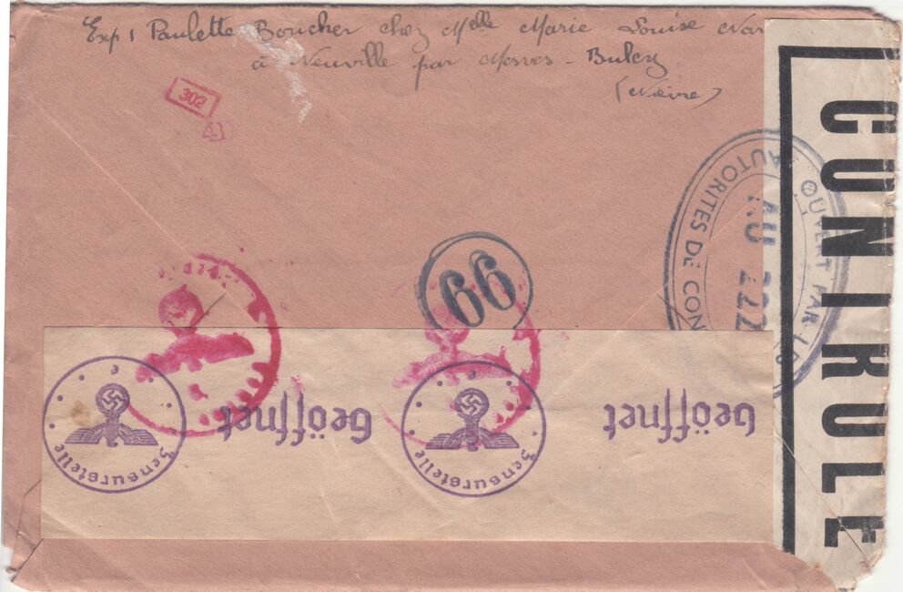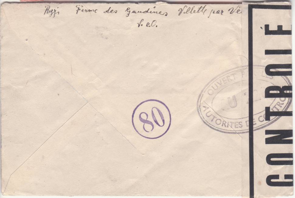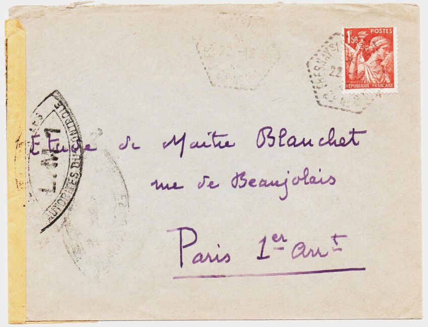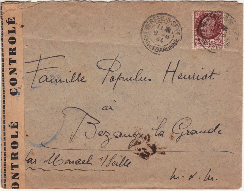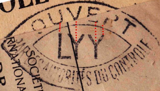 Quelques marques de contrôle apposées par la résistance intérieure (FFI, FTP) sont également apparues, comme ci-dessous une marque des FFI de l'Ardèche.