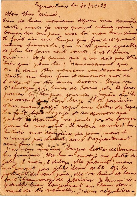 | Gurs (Basses-Pyrénées) | Le camp de Gurs a ouvert en avril 1939 afin d'héberger les espagnols (hommes, femmes et enfants) de la Retirada, la fuite des populations civiles et des combattants Républicains devant l'avancée des troupes franquistes. Dès son ouverture, du fait de son importance, le camp de Gurs est doté d'un bureau de poste. D'une capacité d'environ 19 000 places, il est constitué de barraquements organisés en ilots : Comme dans tous les camps construits à la hâte pour l'accueil des réfugiés, les conditions de vie sont déplorables : boue envahissante, conditions sanitaires précaires, prolifération des parasites et des maladies. |