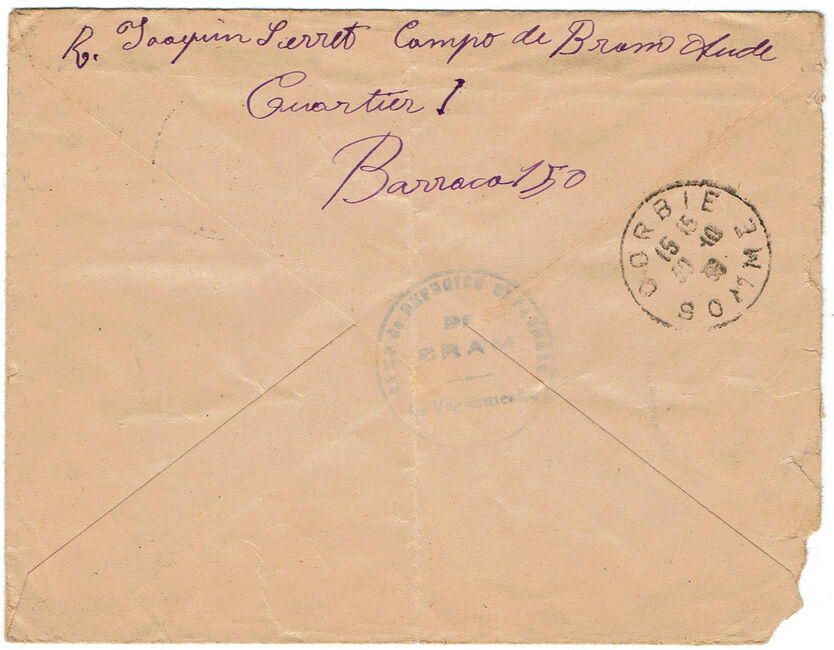 | 1939-10-28 | Lettre envoyée le 26 octobre 1939 par un réfugié espagnol interné au camp de Bram. Cachet de contrôle du camp au verso.
