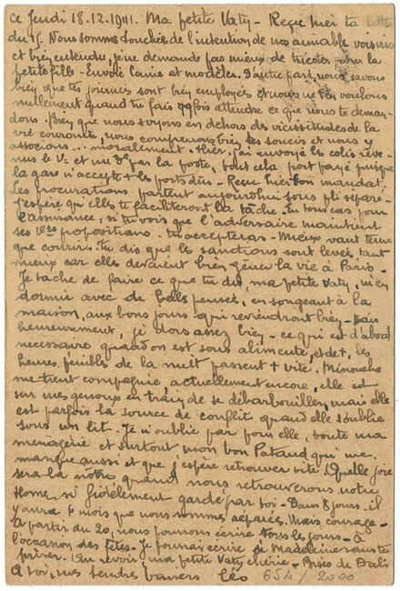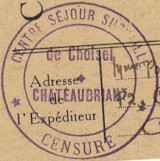 | 1941-12-19 | Carte envoyée le 19 décembre 1941 par une femme internée au camp P2 (politique n°2) de Choisel-Chateaubriant (Loire-Inférieure), avec marque de censure du camp.