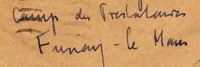 | 1940-05-30 | Lettre envoyée le 30 mai 1940 du Mans par un interné allemand du camp de Fresnay-sur-Sarthe à destination de la Suisse. Censure DA54 du Mans.