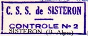 | 1944-04-12 | Carte envoyée le 14 avril 1944 par un politique interné au centre de séjour surveillé de Sisteron. Cachet rectangulaire de contrôle du "CSS de Sisteron - contrôle n°2".