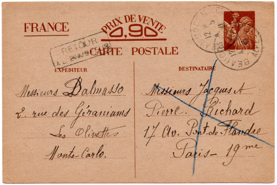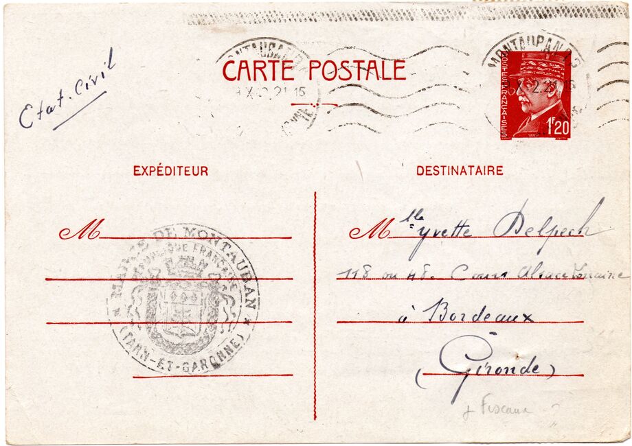 A partir du 2 juin 1941, les cartes postales ordinaires de type entier postal sont autorisées pour la correspondance interzones. En France les entiers suivants seront utilisés pour la correspondance familiale ordinaire: