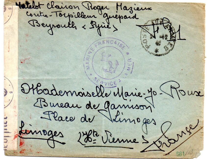 Les relations postales ont été normalement maintenues entre le Levant et la métropole.