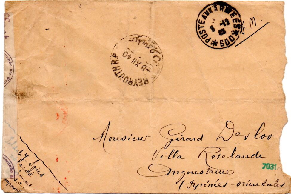 Le courrier en provenance et à destination du Levant était habituellement contrôlé localement par les commissions françaises LO (Beyrouth), L1 (Alep) et L2 (Damas). De plus le courrier échangé entre le Levant et les territoires sous contrôle allemand (y compris la France, zone occupée et zone non occupée) était contrôlé par l'Auslandbriefprüfstelle g de Vienne (Wien)