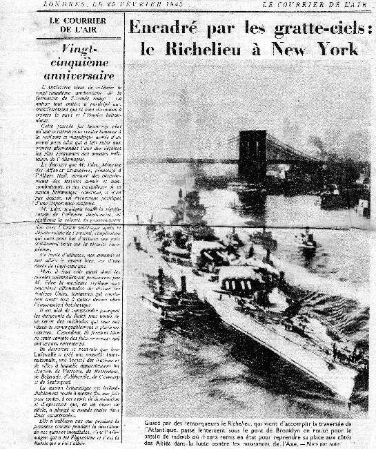 Quelques exemples de navires français rénovés aux USA:Un exemplaire du Courrier de l'Air des FAFL évoquant l'arrivée du Richelieu à New-York: