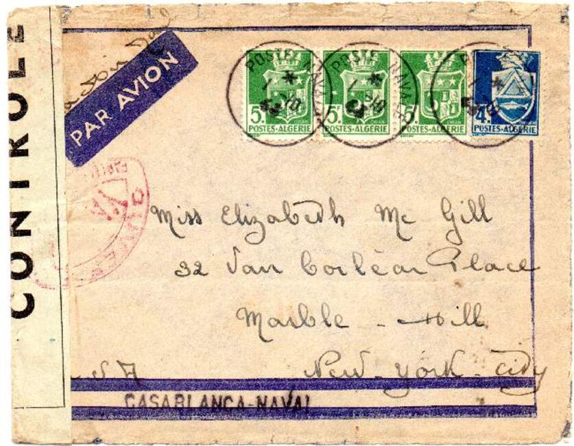 Les courriers sont alors centralisés au bureau de la poste navale de Casablanca qui oblitérait (on trouve toutefois des plis oblitérés d'agences navales embarquées à bord des navires) et transmettait au "fleet post office" de la marine US (qui parfois apposait également son oblitération).