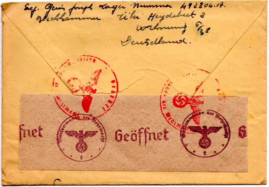 L'indice e était attribué à A.B.P Francfort, ce qui explique la présence soit de bandes de fermetures combinées aux cachets Oberkommando der Wehrmacht avec cet indice e, soit de cachets Ae (A signifiant Auslandsbriefprüfstelle).