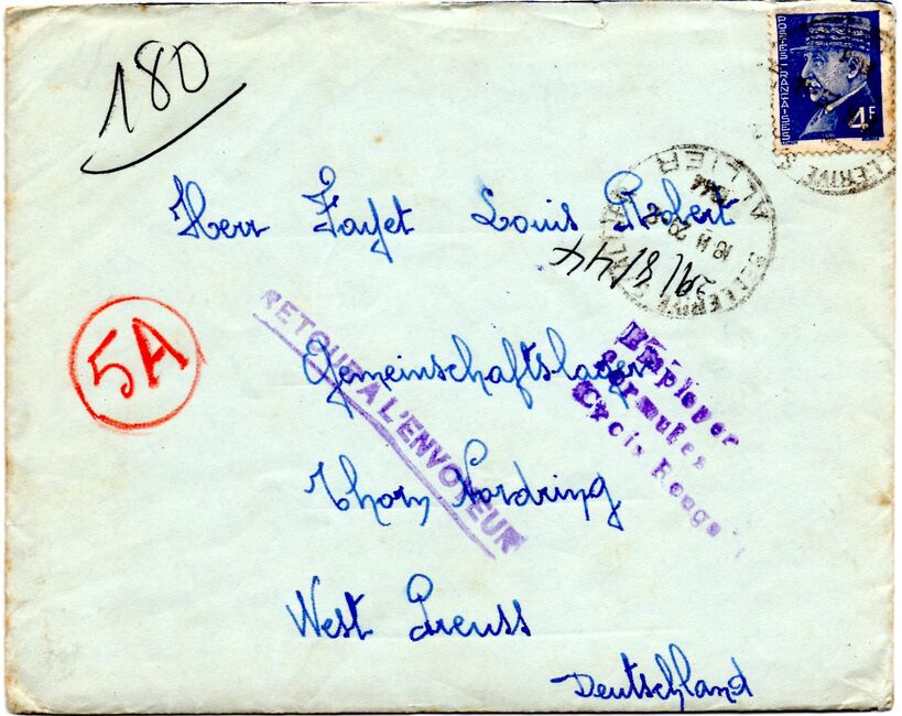 Les courriers sont refoulés de part et d'autre à partir de fin août 1944. En France, les griffes RETOUR à l'envoyeur, Courrier non acheminable et Employer Formules Croix Rouge sont appliquées sur les courriers retournés. En Allemagne, une griffe équivalente portant la mention Zurück! z. Zt. nich zu beförden est utilisée.