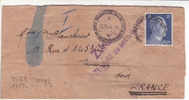 Durant toute la durée du STO, les courriers ouvriers sont contrôlés par l'A.B.P Francfort, qu'ils soient échangés avec la zone sud ou la zone nord.