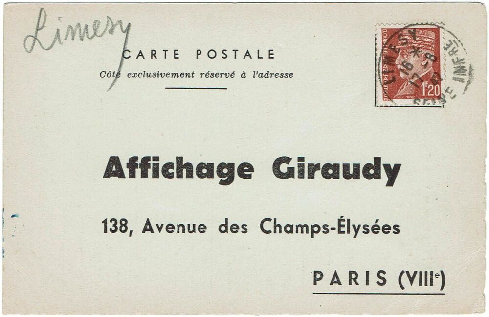 | Cartes postales ordinaires : avec réponse payée | 1,10 f. |
