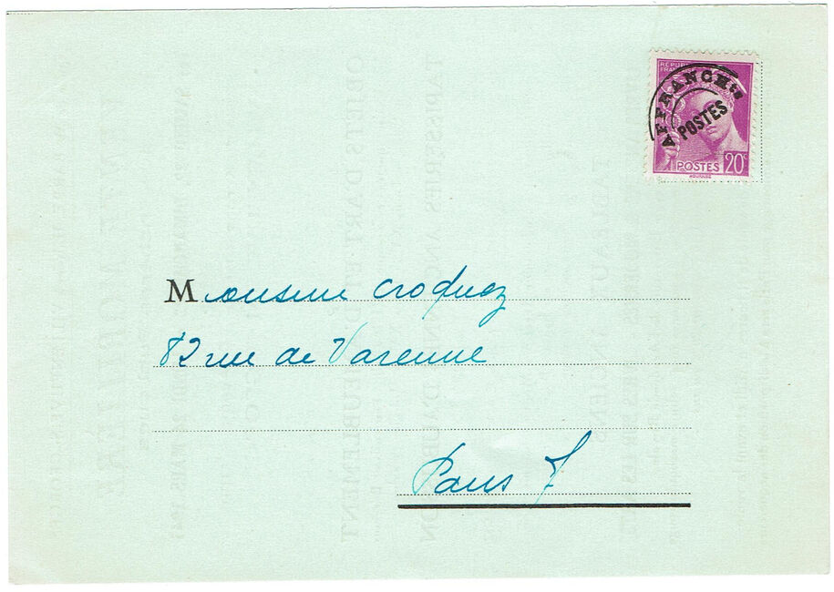 Ce tarif est en réalité applicable dès la réception du J.O. du 1er janvier 1942, soit le 3 janvier 1942 à Paris et à Vichy. Sur ce sujet voir Laurent Bonnefoy, Des dates d'application des tarifs postaux : le cas extrême du début de l'année 1942 dans les Feuilles Marcophiles n°371 4e trimestre 2017.
