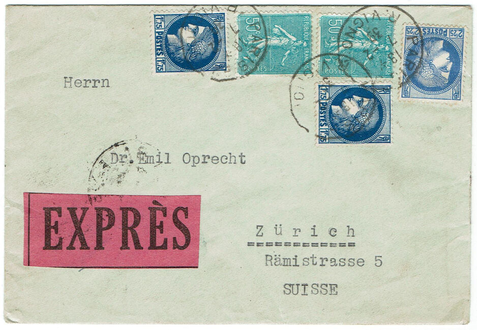 6,50 f. | 8 f. | 9,50 f. | 11 f. | 12,50 f. | 14 f. | 15,50 f. | 17 f. | 18,50 f. | 20 f. | + 1,50 f. | Taxe spéciale sur les correspondances à distribuer par exprès 5 f. soit pour une lettre à distribuer par exprès, par échelon |