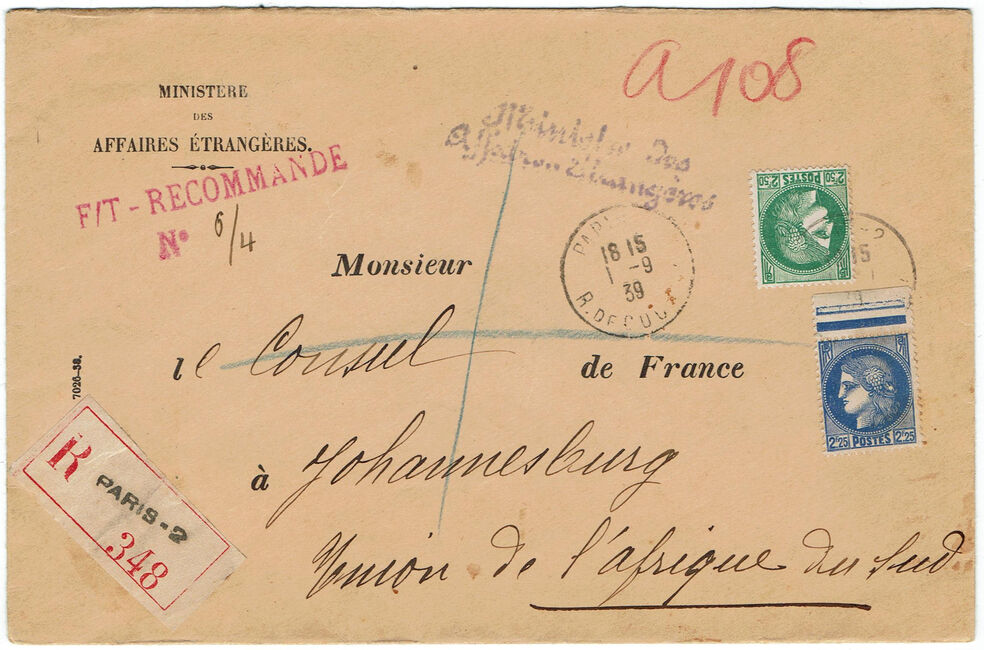 | Lettres : de 0 à 20g : 2,50 f. puis par 20 g. ou fraction de 20 g. : 1,50 f. | 2,50 f.