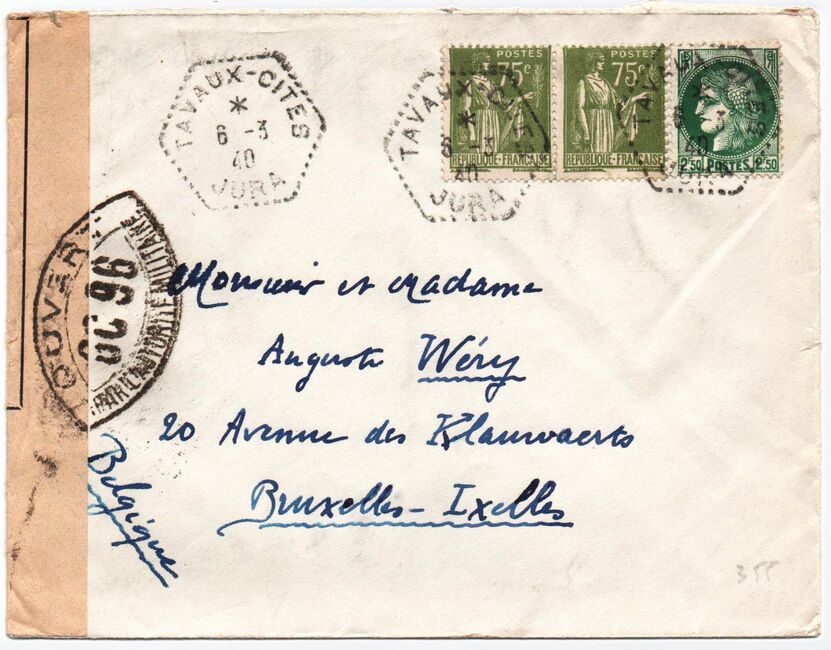 | Lettres : de 0 à 20g : 4 f. puis par 20 g. ou fraction de 20 g. : 2,40 f. | 4 f.