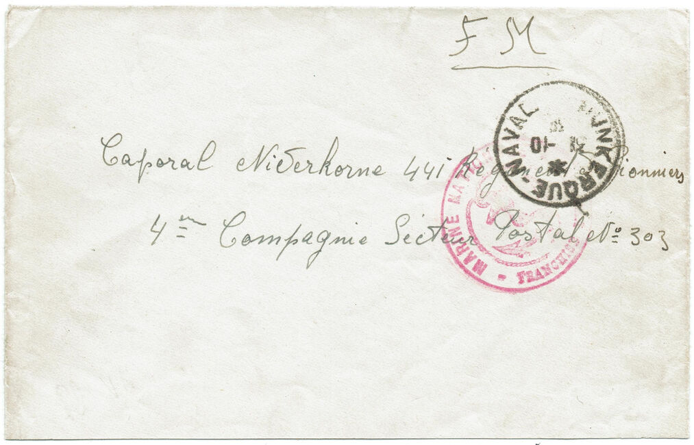 | 1939-10-31 | Lettre envoyée le 31 octobre 1939 par un artilleur du fort de Zuydcoote via Dunkerque-naval.