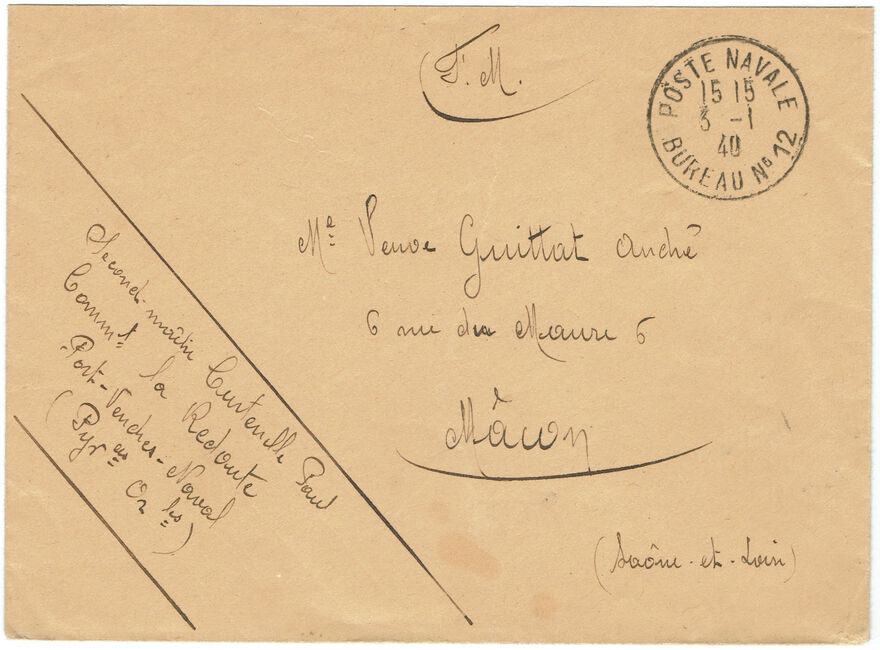 | 1940-01-03 | Lettre envoyée le 3 janvier 1940 du bureau n°12 de la poste navale (Port-Vendres)