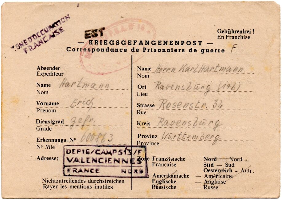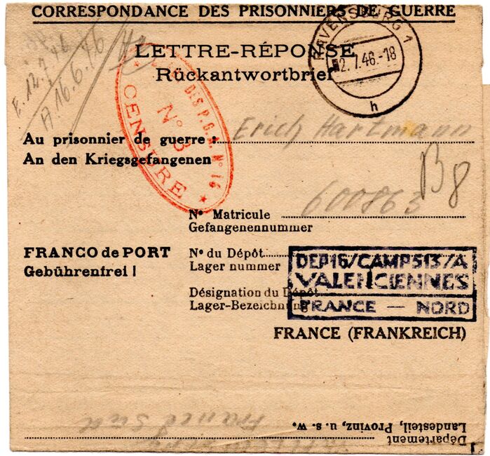 L'organisation des dépôts de prisonniers française est calquée sur l'ancienne carte des régions militaires (*). L'indicatif du dépôt de prisonniers est composé du numéro de région militaire (de 1 à 21) et du numéro de dépôt.