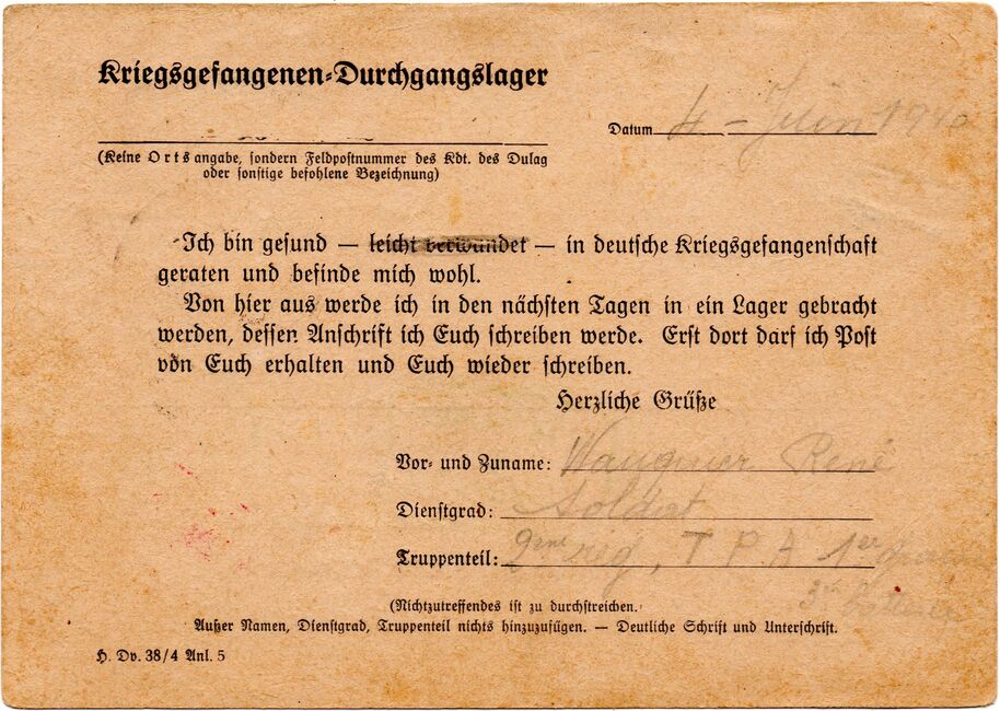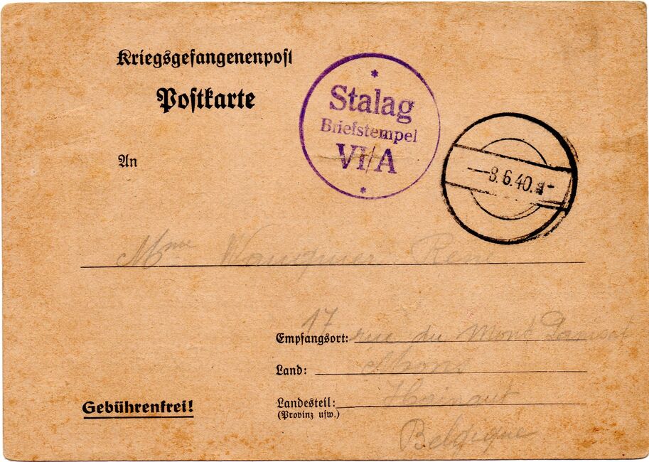 Carte postale de Dulag utilisé au Stalag VI-A par un soldat Belge le 8 juin 1940.