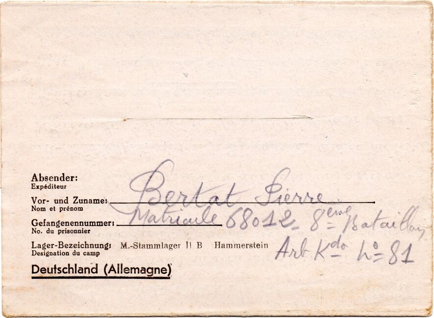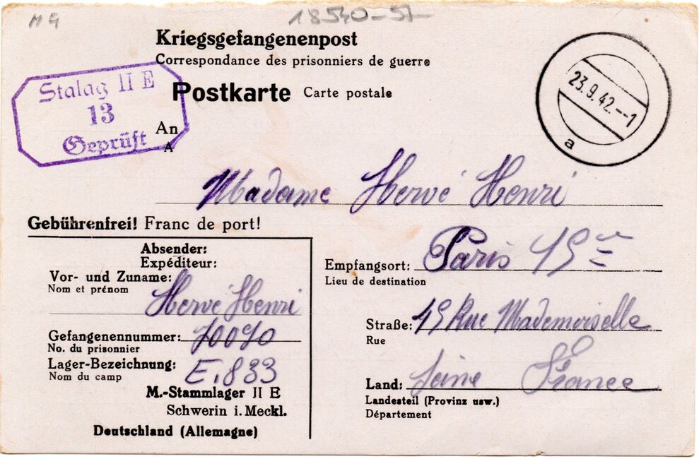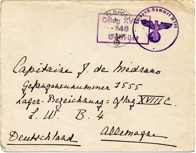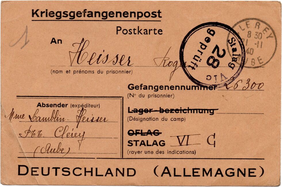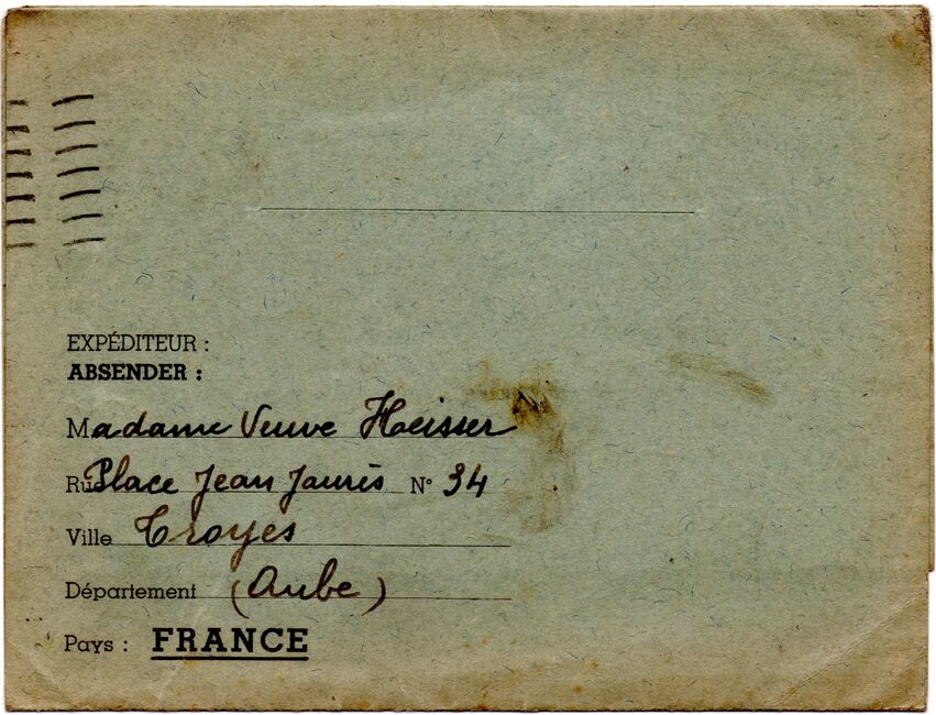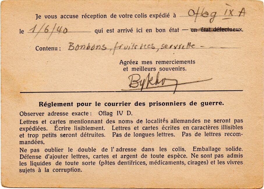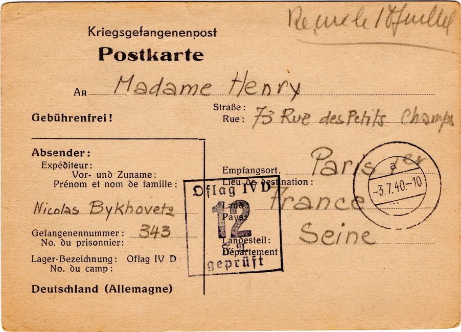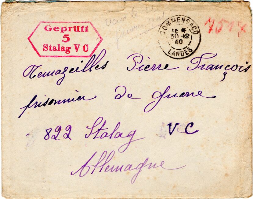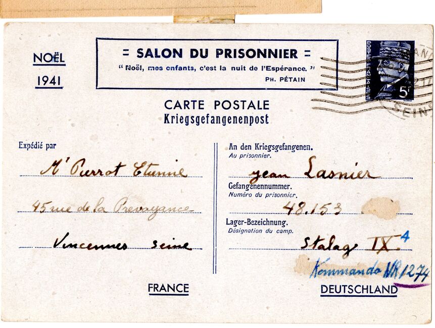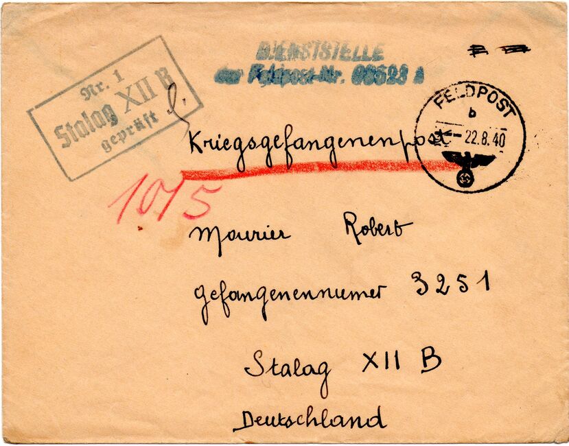b) centralisation à Paris (rue d’Alleray), et envoi, par l’entremise de la poste militaire allemande, des correspondances adressées de la zone occupée aux prisonniers français en Allemagne ou en Italie. L’envoi des colis postaux et des paquets n’est pas encore autorisé ;