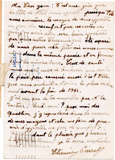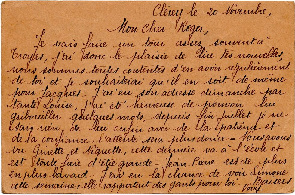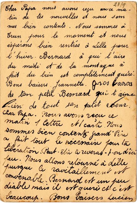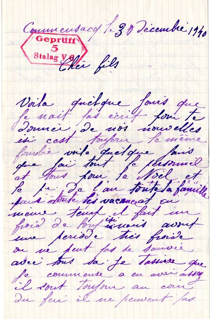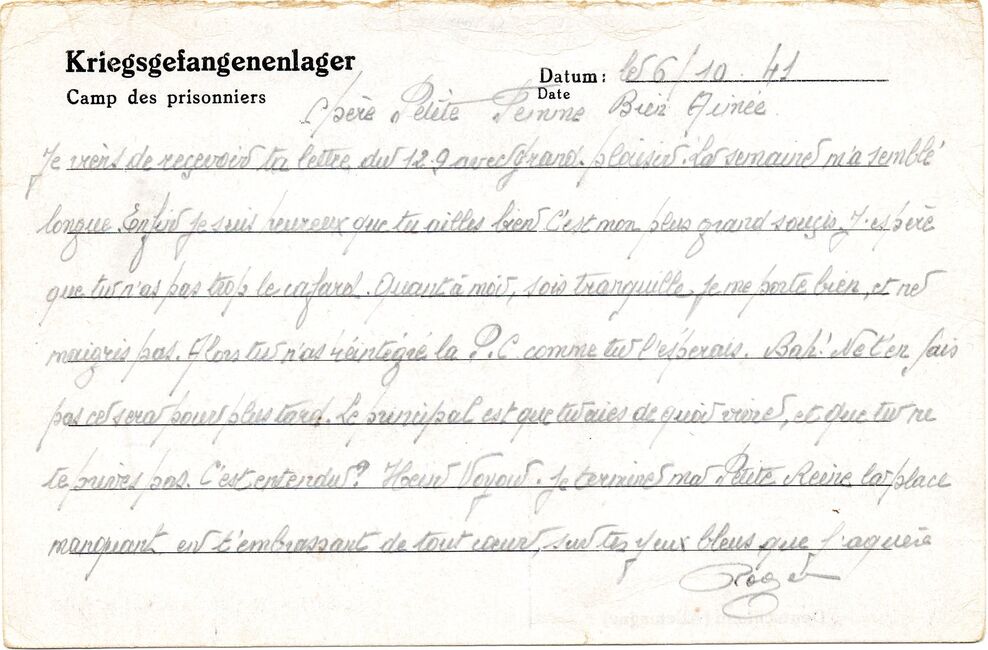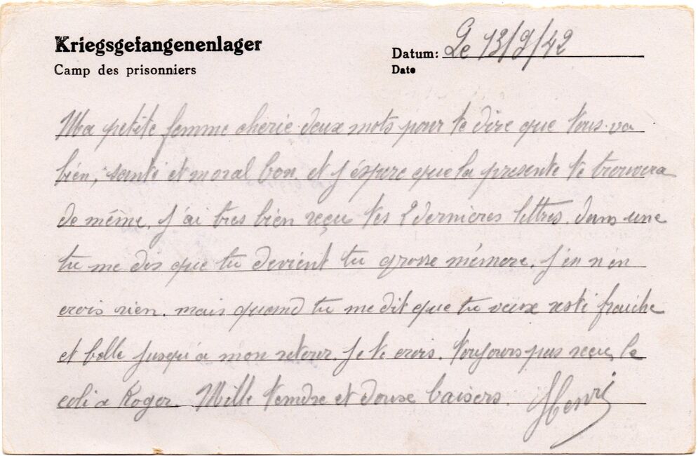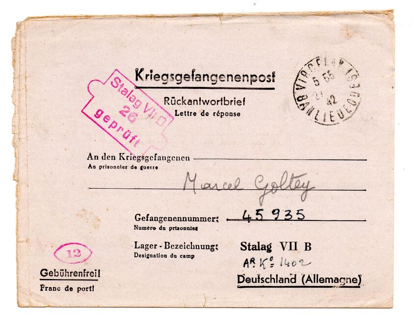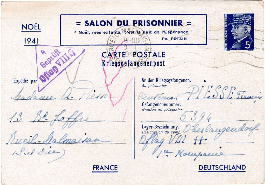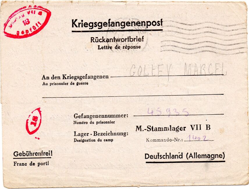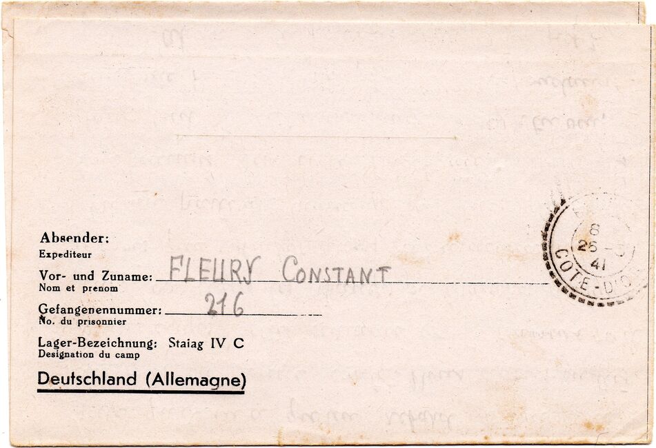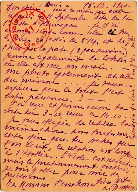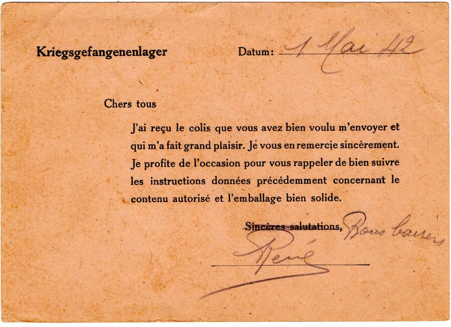 b) centralisation à Paris (rue d’Alleray), et envoi, par l’entremise de la poste militaire allemande, des correspondances adressées de la zone occupée aux prisonniers français en Allemagne ou en Italie. L’envoi des colis postaux et des paquets n’est pas encore autorisé ;